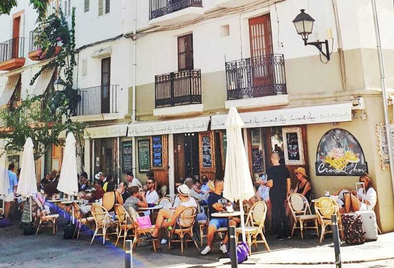The Croissant show is een onwijs leuk restaurantje in Ibiza-Stad. Je zit op een super gezellig pleintje, en je kijkt op de mooie ingang/poort van Dalt Vila. Je hebt super veel keus qua eten én drinken.